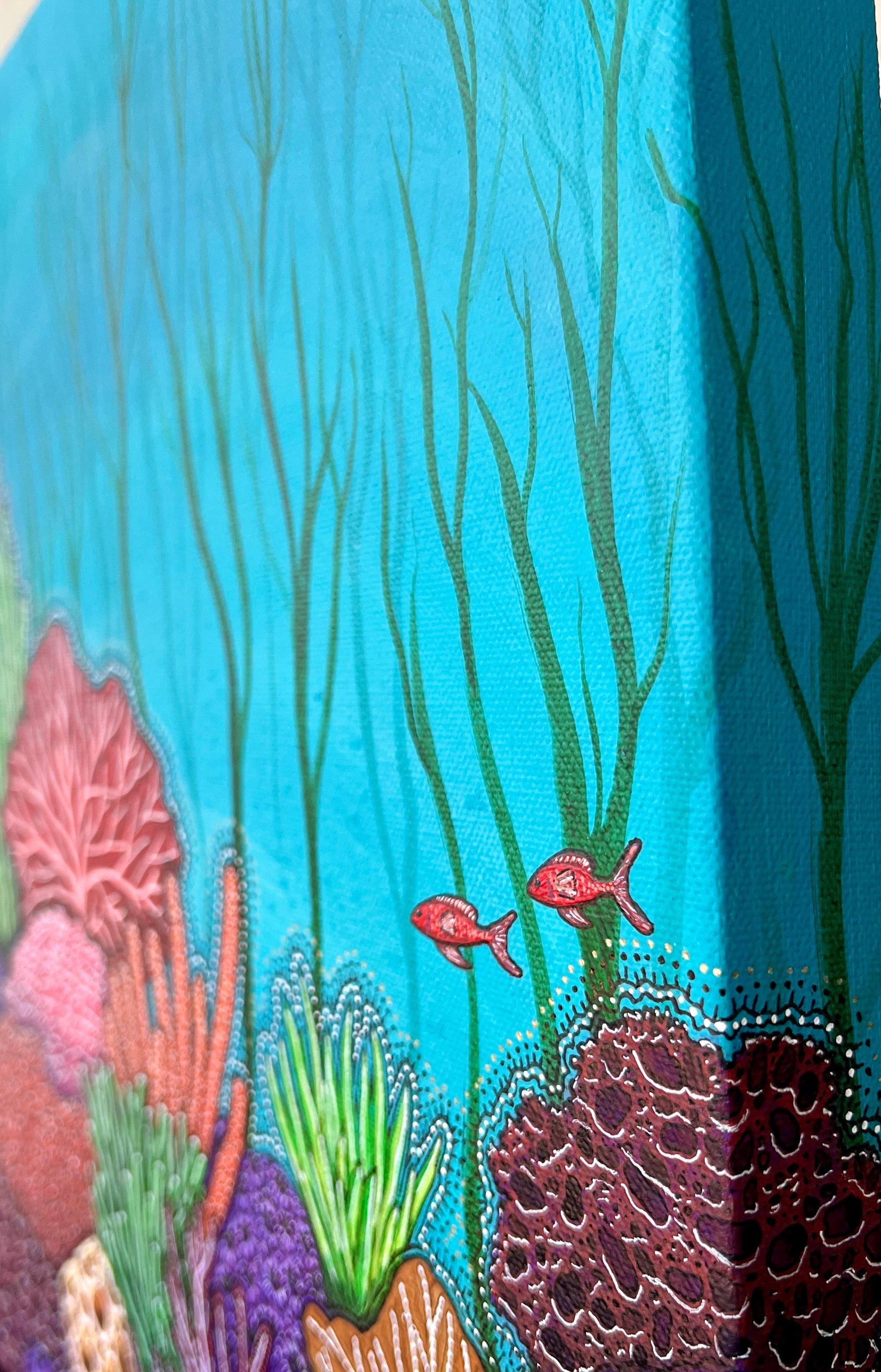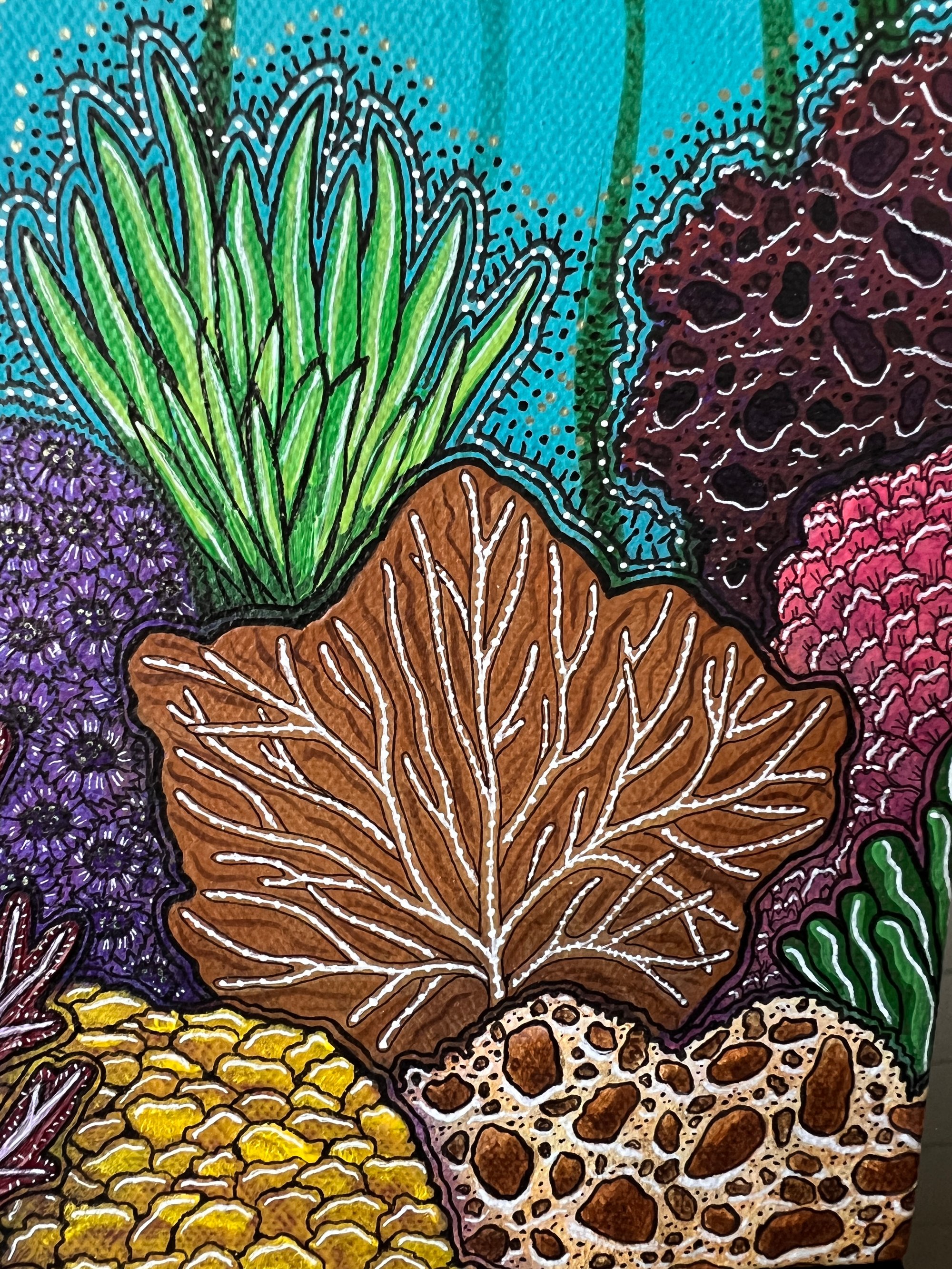 This original acrylic and ink painting on canvas comes wired and ready to hang. No frame necessary as the painting wraps around all sides.